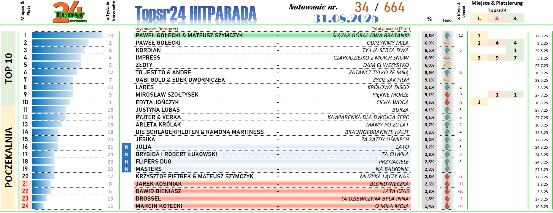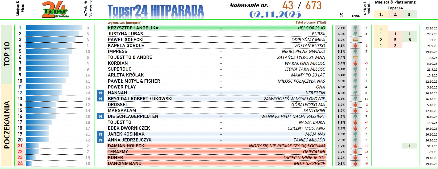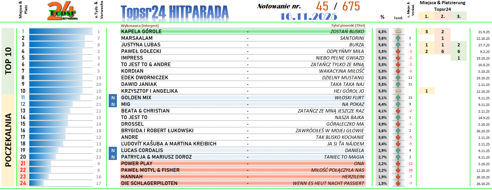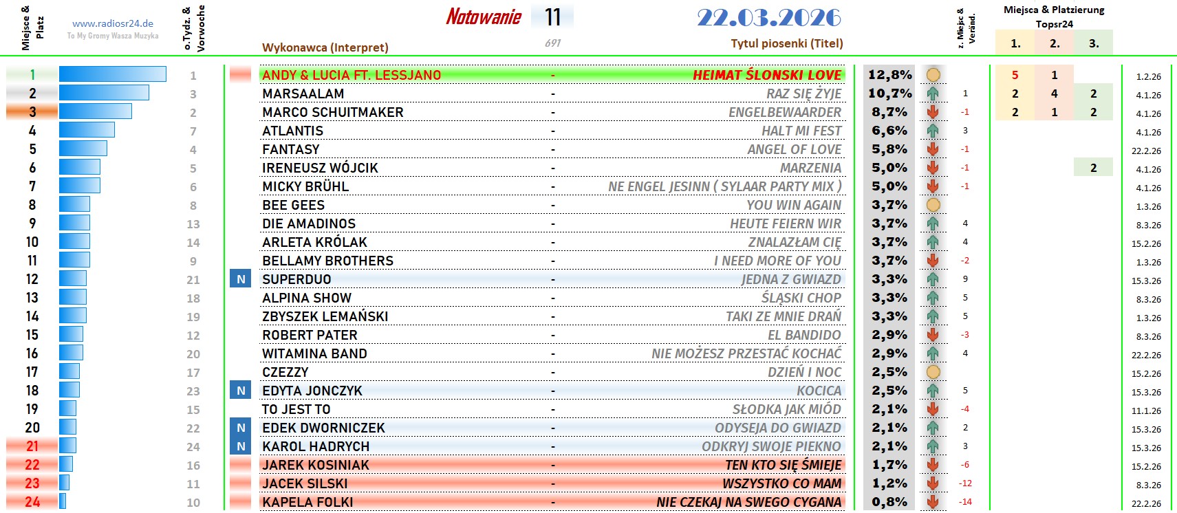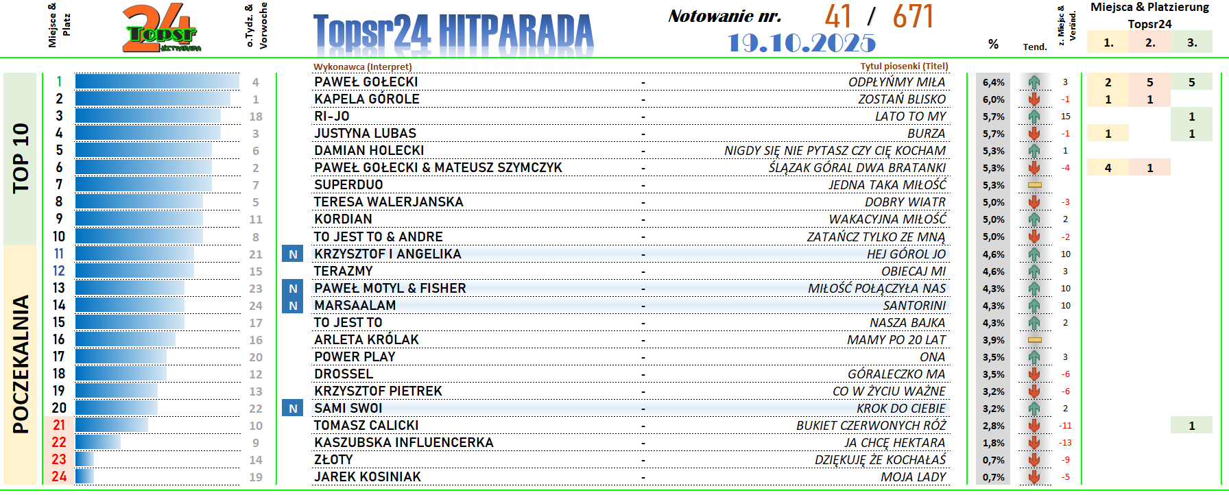 ARCHIWUM notowan Hitparady Topsr24 gdzie znajdziecie wszystkie notowania HITPARADY radia radiosr24.de od roku 2016 do dzis, oraz PIOSENKI ROKU 2011-2025.
