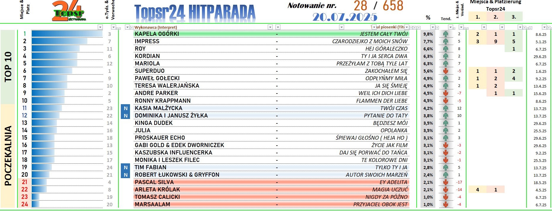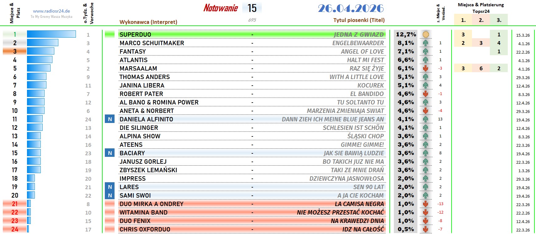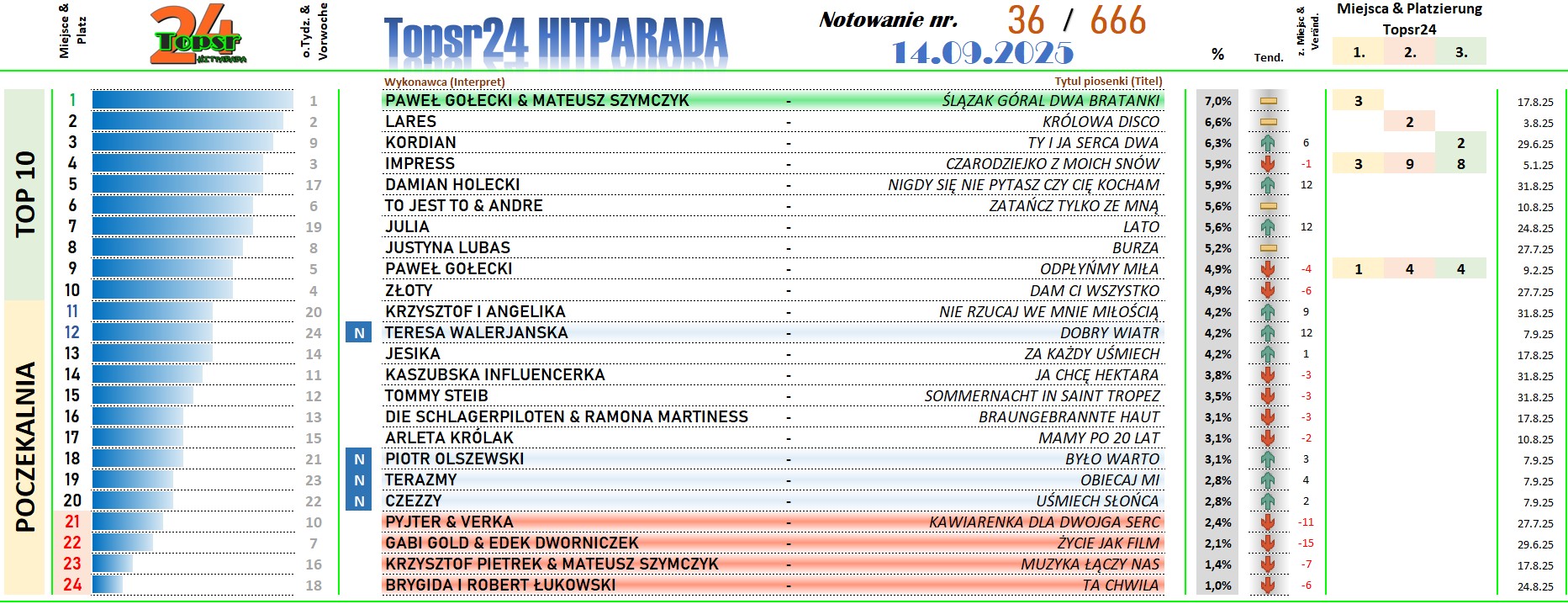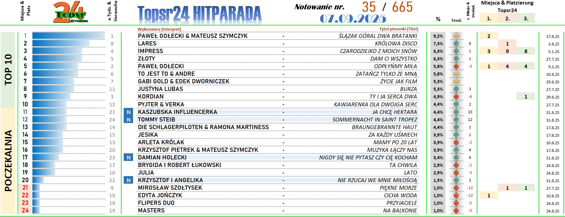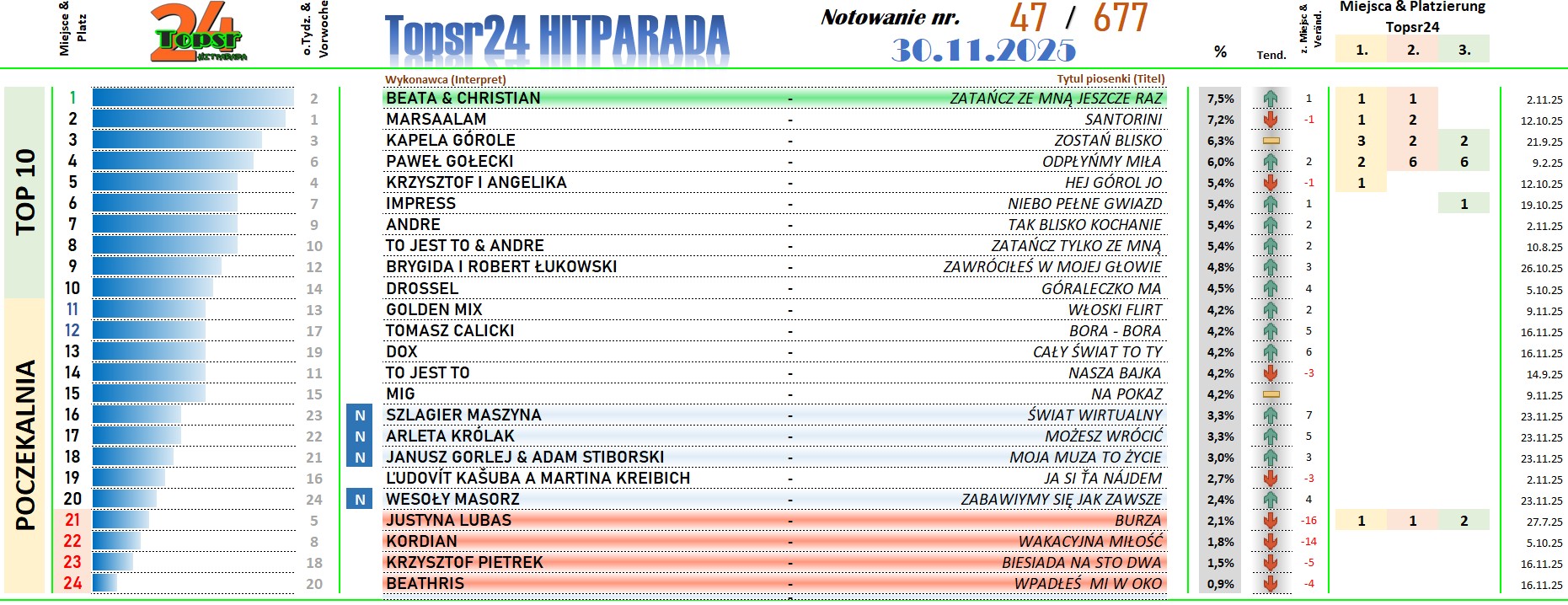 ARCHIWUM notowan Hitparady Topsr24 gdzie znajdziecie wszystkie notowania HITPARADY radia radiosr24.de od roku 2016 do dzis, oraz PIOSENKI ROKU 2011-2025.