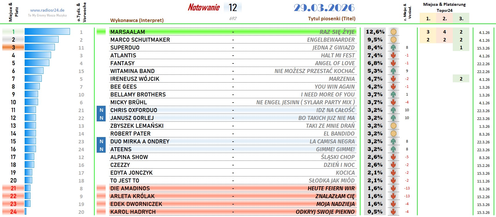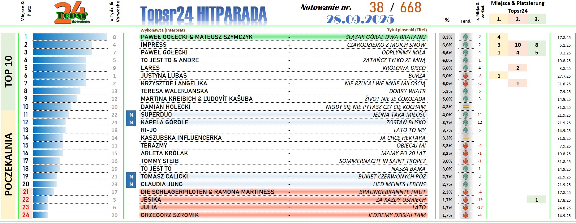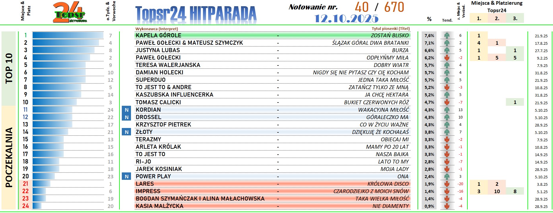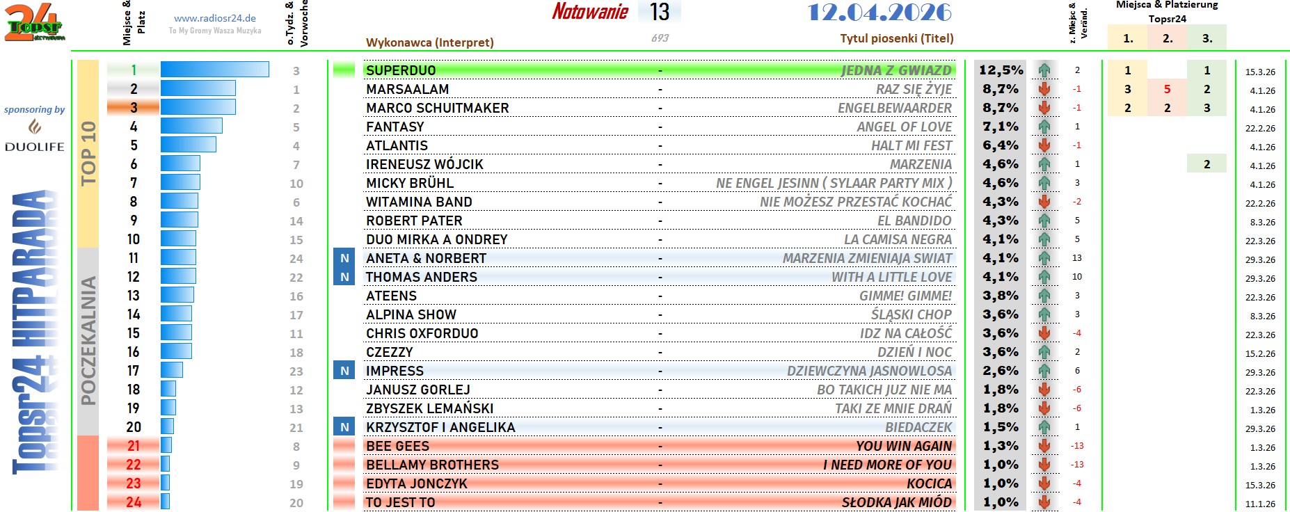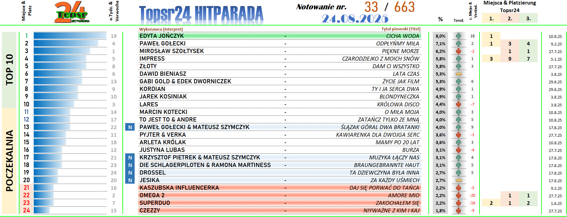 ARCHIWUM notowan Hitparady Topsr24 gdzie znajdziecie wszystkie notowania HITPARADY radia radiosr24.de od roku 2016 do dzis, oraz PIOSENKI ROKU 2011-2025.